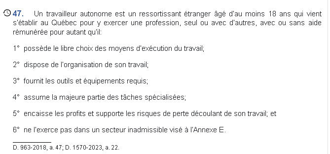 换言之,PEQ 明确排除自雇经验。而PSTQ 和大部分 CSQ 经济类路径同样遵循“优先认可受雇关系下的经济贡献”的逻辑,因此平台骑手和网约车司机的工作经验,原则上无法作为移民可用工作经验计算,官网对于PSTQ的工作经验也明确要求 n’est pas pour le compte d’une entreprise sur laquelle vous exercez un contrôle juridique ou de fait, directement ou indirectement.