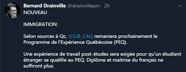 据魁北克移民部长SJB透露,下一个版本的PEQ,除了魁省学历及法语成绩外,留学类PEQ也将要求申请人拥有魁北克工作经验。